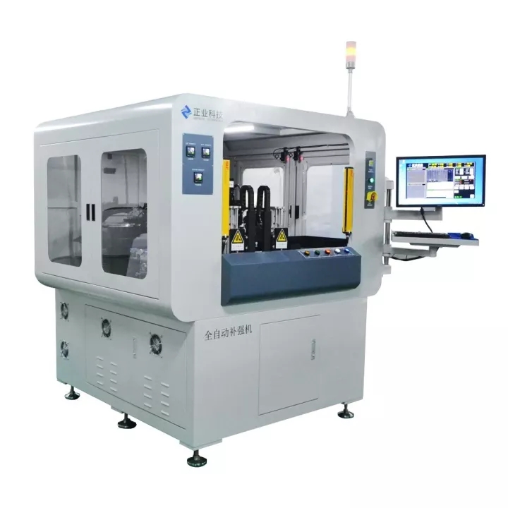 自動補強機是正業(yè)科技研發(fā)的一款適應(yīng)于對柔性線路板貼合補強材料的技術(shù)成果,也是本次參觀活動的明星產(chǎn)品之一。該款設(shè)備實現(xiàn)全自動上下板,自動放隔紙,節(jié)省人工成本,可一鍵倒入,換料號只需10分鐘,該款設(shè)備貼合精度高:±50um(高精模式),±75um(高速模式),貼片效率快:2500PCS/H(高精模式),4000PCS/H(高速模式)。